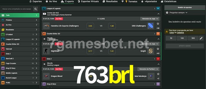 O 763brl oferece uma grande seleção de opções de apostas em e-sports com probabilidades competitivas